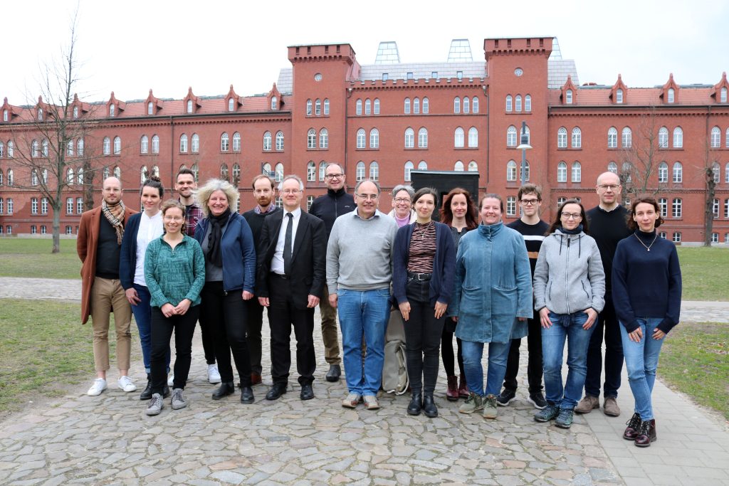 Teilnehmer*innen aller acht Hochschulen kamen für das sechste Verbundtreffen in der Technischen Hochschule Brandenburg auf geschichtsträchtigem Boden zusammen. Der Campus der Hochschule befindet sich auf dem Gelände der einstigen Kürassier-Regierung, in den 1960er-Jahren bildete die NVA-Luftverteidigung hier ihre Offiziersschüler aus. Der im Gebäude der Hochschulbibliothek befindliche wohlklingende Rittersaal bot den passenden Rahmen für ein besonderes Meeting: Die erste Projekthälfte ist geschafft – Zeit, zurückzublicken und nach vorne zu schauen.
